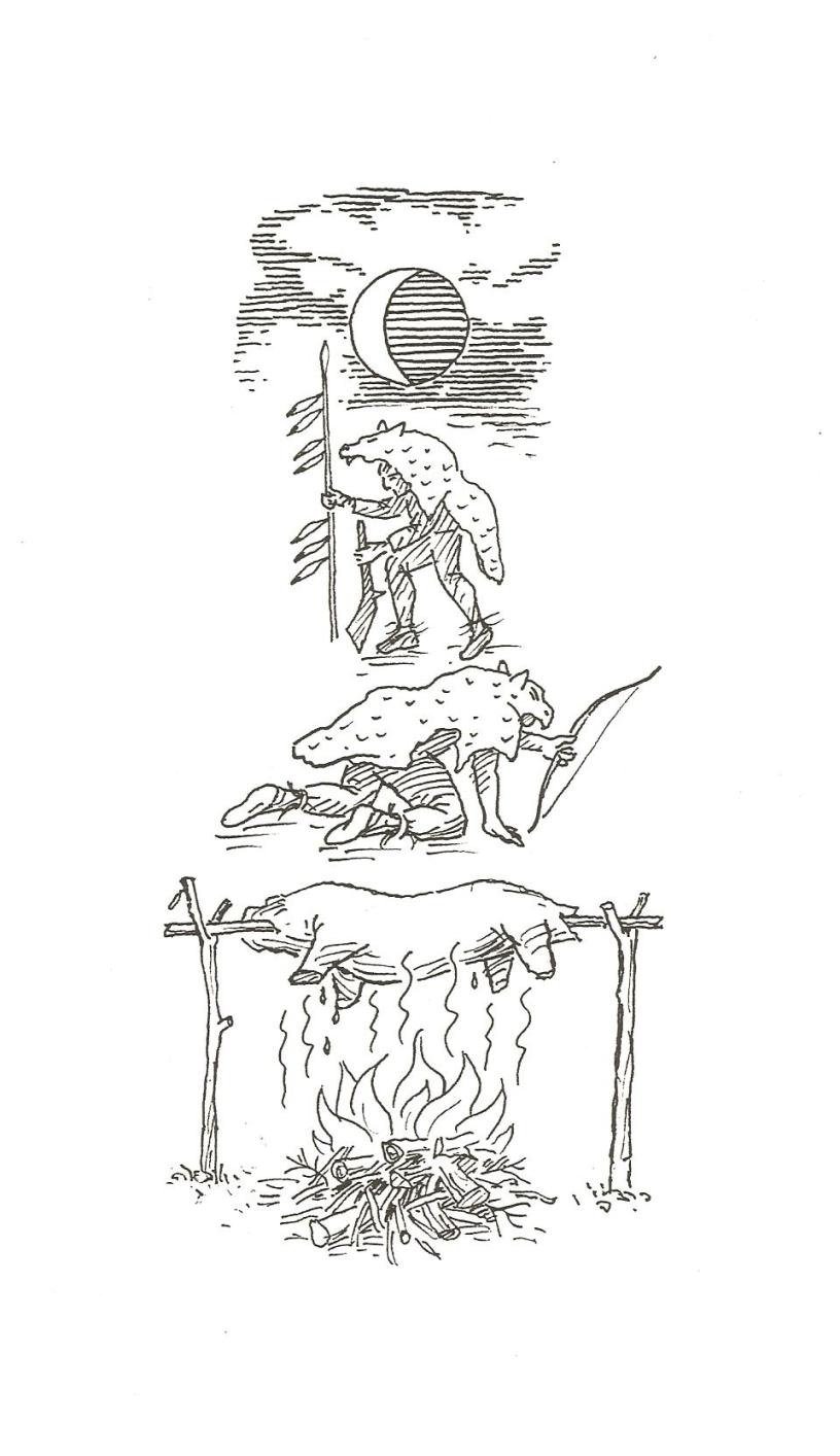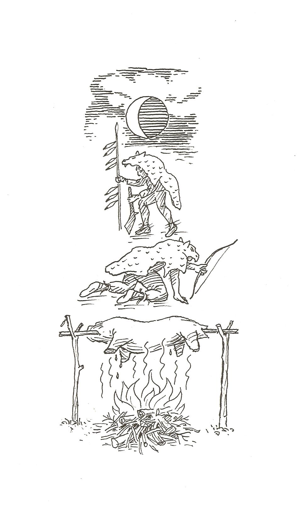 There was a ceremony which took place at the end of the hunting season. This was to thank the Great Spirit for the bounty of the Earth. The animals had to be left in peace to breed for some months and we would only catch certain small animals at these times. However, just before this rather lean time there would be a great celebration. Meat would be roasted. Costumes would be prepared and all the traditional dances of the occasion would be practiced by the young ones, so that they knew what to do when the big event came.