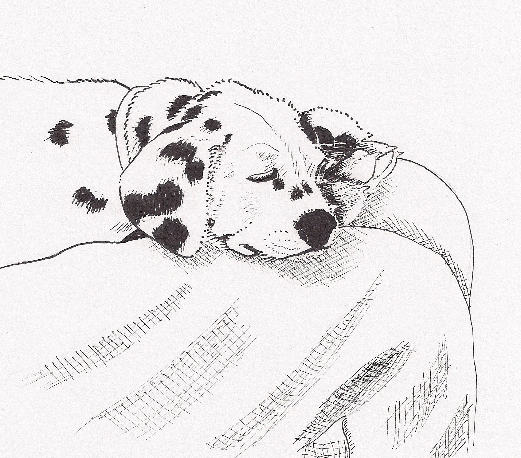 Everyone calls me Dotty, but actually I am ‘Miranda Saint Edmunds the Second’. I am a Dalmatian. I come from a long line of famous dogs. I am sure you know my breed; we are white, spotted all over with black dots. We are considered to be very pretty and perhaps a little bit stupid – hard to train – you know the sort of thing; we don’t like to ‘fetch’ or to ‘sit’. We just like to do our own thing.
